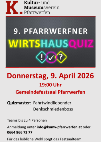Wir freuen uns, euch zum 9. Pfarrwerfner Wirtshausquiz einladen zu dürfen!